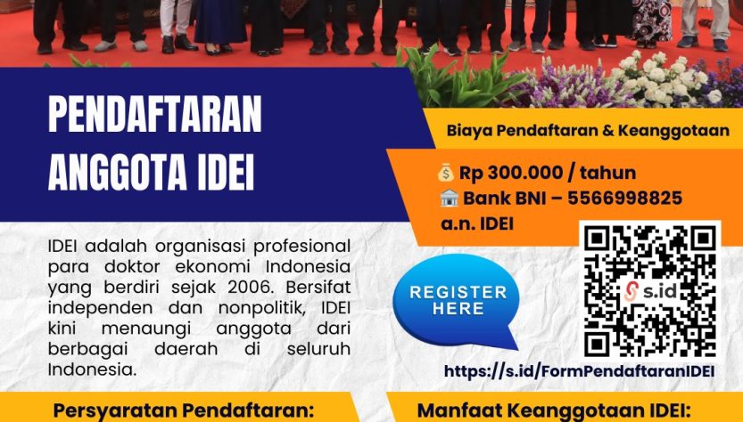 📢 PENDAFTARAN ANGGOTA IDEI TELAH DIBUKA Insan Doktor Ekonomi Indonesia (IDEI) merupakan organisasi profesional para doktor ekonomi Indonesia yang berdiri …